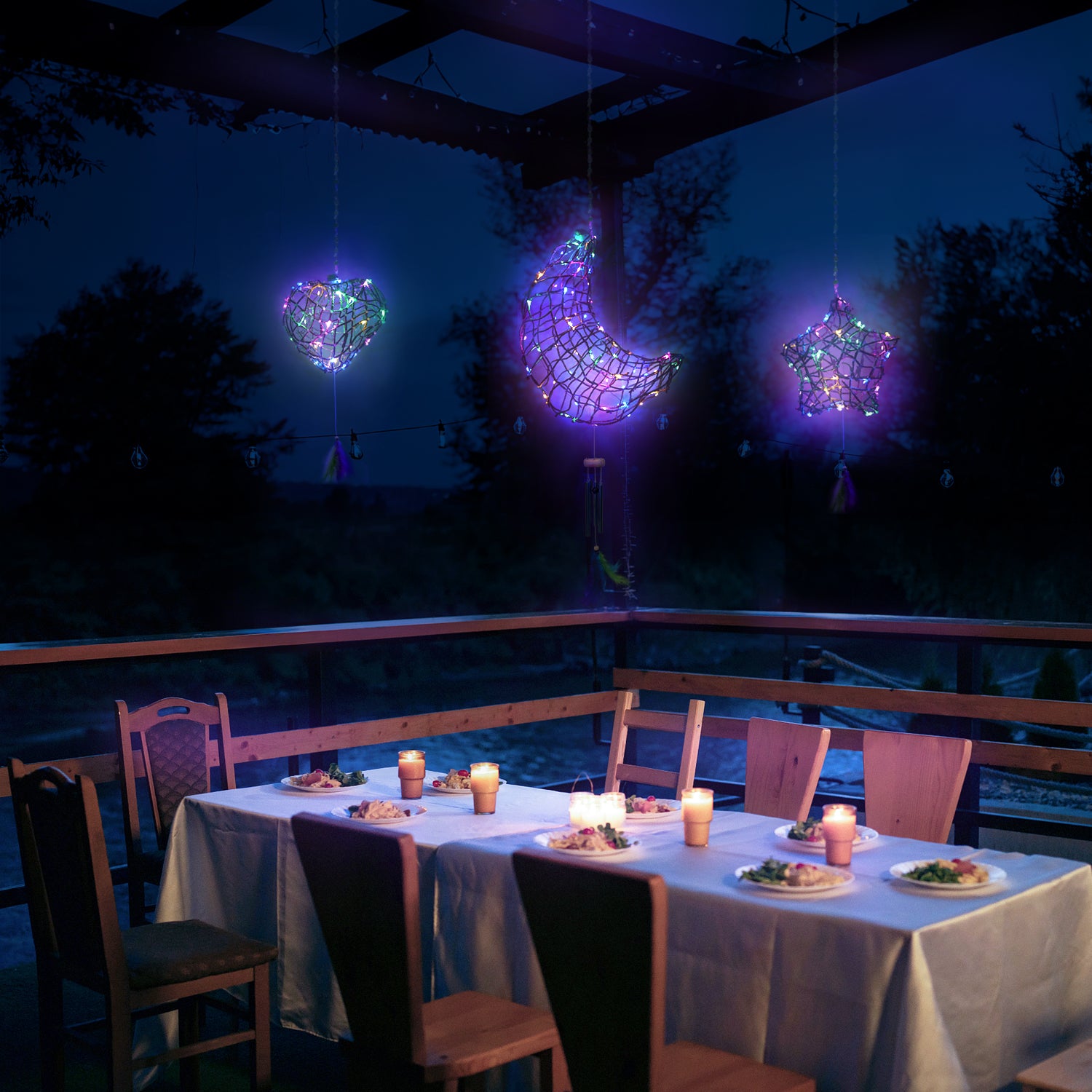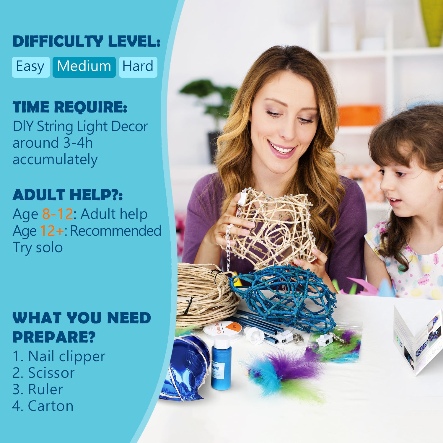 All-in-One Creative Fun: 3 Projects in 1 Kit - This complete arts and crafts set lets kids create 3 dazzling projects: 3 glowing 3D string light sculptures (Heart, Star, Moon). Everything is included: 3 foil balloons, 600+ zip ties, natural paper strings, 3 spray paints (Blue, Green, Purple), a brush, feathers, aluminum tubes, and 18.75ft multi-color LED string with 60 bulbs. No need to buy anything else.