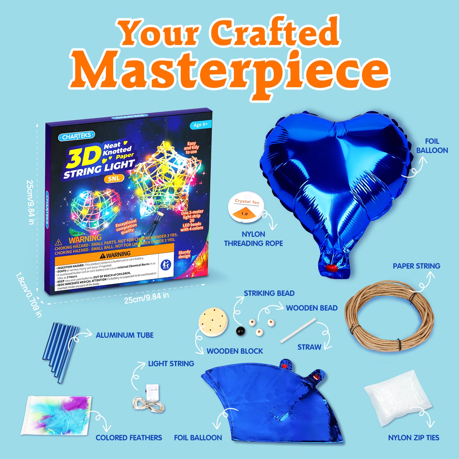 CHARTEKS 3D String Light Craft Kit for Kids, String Art Kit with LED Bulbs and Wind Chime, Arts and Crafts Set, Birthday Gifts for Girls Boys Ages 8+ (Paper String, SNL)